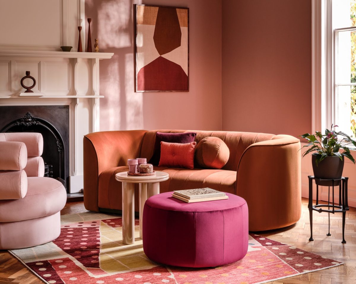 Bye-bye rigid, boxy silhouettes, hello sophisticated, sculptural furniture in plush fabrics and tactile materials – cocooning and comforting.