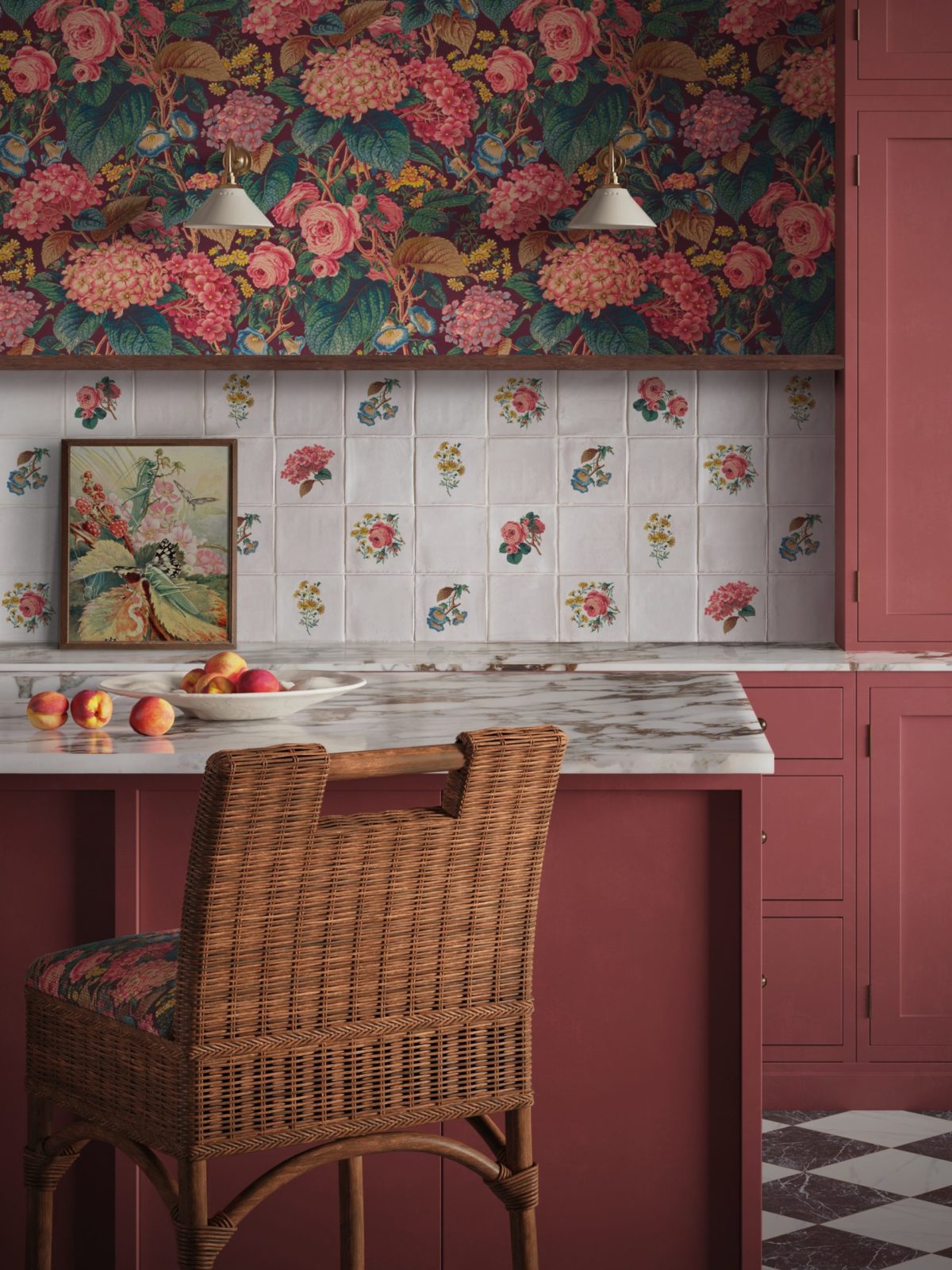 Ca Pietra X Divine Savages, The Brambles Collection wall tiles, from €?? per tile, Tilestyle; The Brambles Antique Rose wallpaper, €221.95 a roll, Divinesavages.com