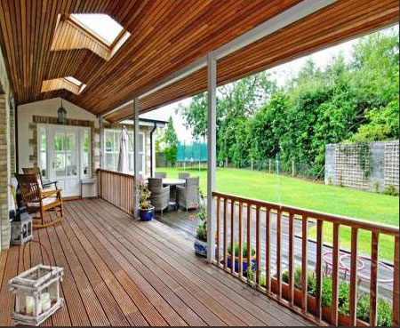 The sunroom opens onto this cool American-style covered porch at the back of the house which would be perfect for barbeques with family and friends without the fear of getting drenched if the weather suddenly decided to change which it so often does in this country! Also a perfect spot for reading a book in peace or enjoying a glass of wine after a long day.